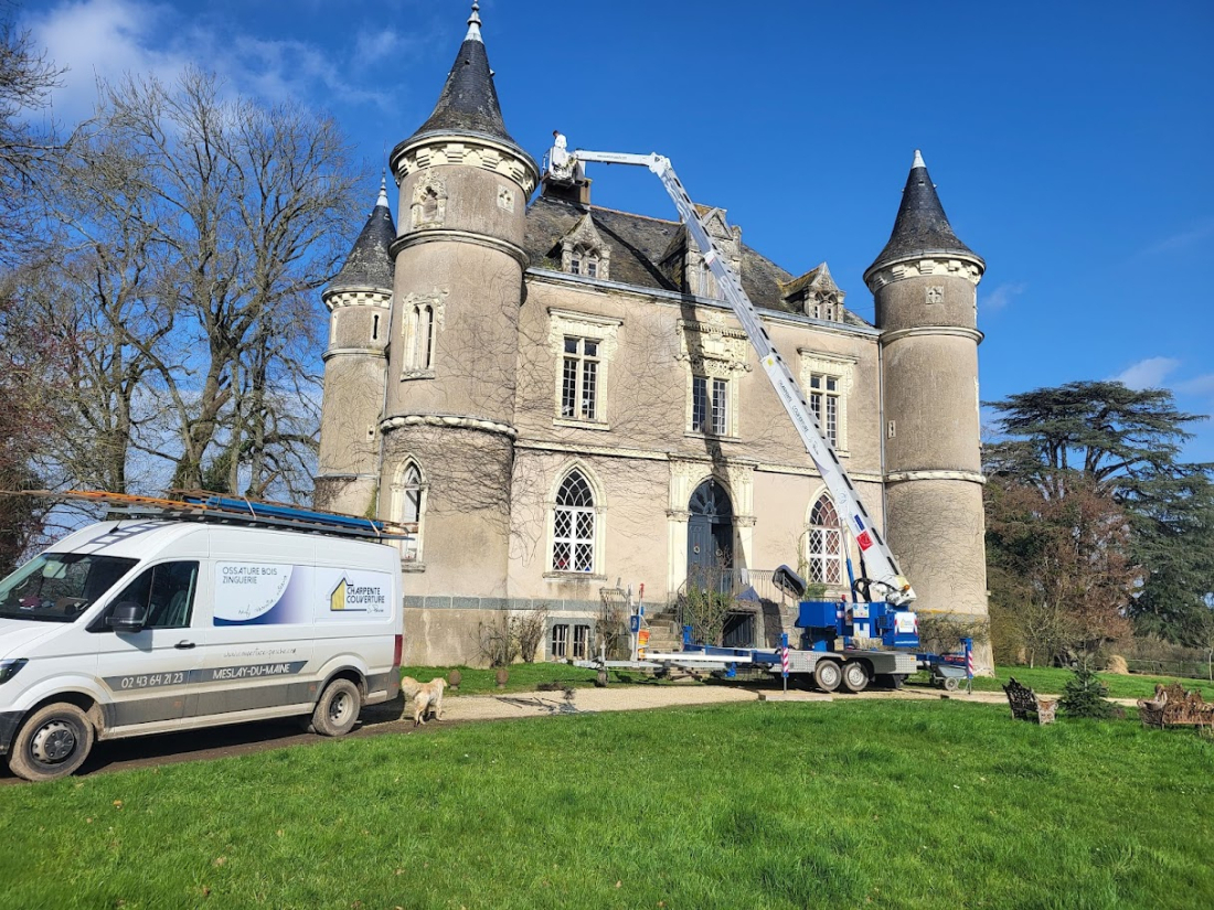 L'entreprise intervient sur des chantiers à 30 km maximum autour de Meslay du Maine. Pas de grands déplacements. Nous disposons d'équipements récents tel que grues avec nacelles, téléscopique, échafaudages, plieuse et profileuse zinc.